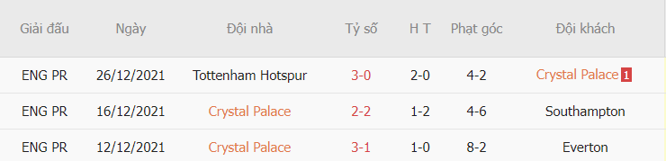 - hống kê phạt góc sau 3 trận gần đây cho thấy Crystal Palace có cho mình được 14 pha phạt góc, còn về phía West Ham họ cũng có cho mình được 20 pha phạt góc.
