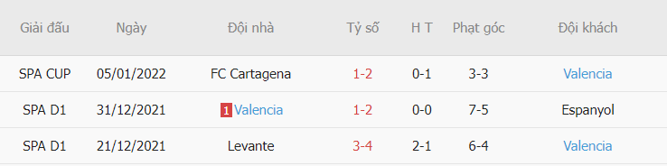 - Còn về phía Valencia từ đầu mùa giải họ có phần khởi động hơi chậm chạp nhưng khoảng thời gian gần đây họ đã cho lại được một phong độ vô cùng tốt khi đã có cho mình liên tiếp nhưng chiến thăng quán trọng.