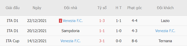 - Thống kê phạt góc sau 3 trận gần đây cho thấy Salernitana có cho mình được 9 pha phạt góc, còn về phía Venezia họ cũng có cho mình được 15 pha phạt góc.
