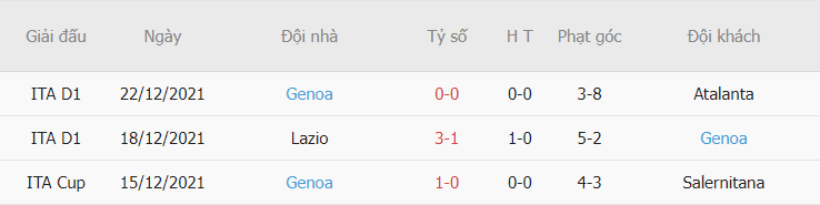 - Thống kê phạt góc sau 3 trận gần đây cho thấy Sassuolo có cho mình được 14 pha phạt góc, còn về phía Genoa họ cũng có cho mình được 9 pha phạt góc.