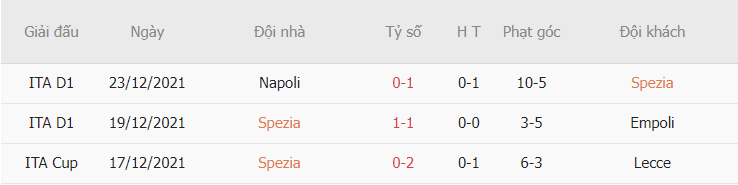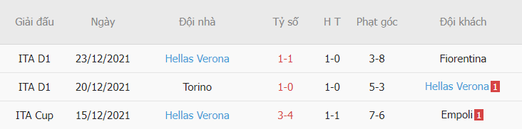 - Thống kê phạt góc sau 3 trận gần đây cho thấy Spezia có cho mình được 14 pha phạt góc, còn về phía Verona họ cũng có cho mình được 13 pha phạt góc.
